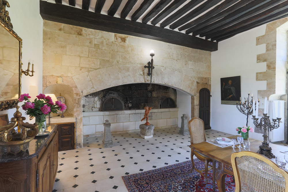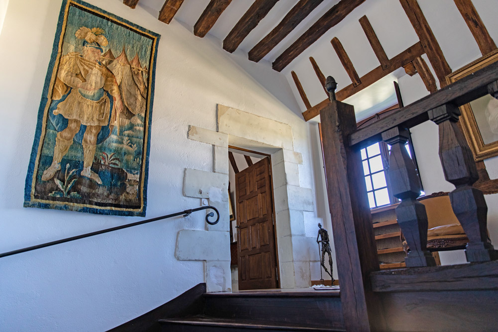 The outside front is a little bit austere but reflects perfectly the restrained architecture of this century in the Loire valley. Passed the great porch, the inside front lights up with its numerous openings, stone colour and garden elegance. In the entrance hall, a piece of painted woodwork from the Richelieu chateau representing King Louis the 14th takes up to a century usually called “the Great Century”. The 3 reception rooms on the ground floor impress by their beauty and their purity and are the sign of the pleasure to be staying in such a place.